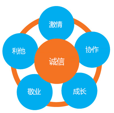 企業(yè)價(jià)值觀:誠(chéng)信,利他,激情;敬業(yè),協(xié)作,成長(zhǎng)